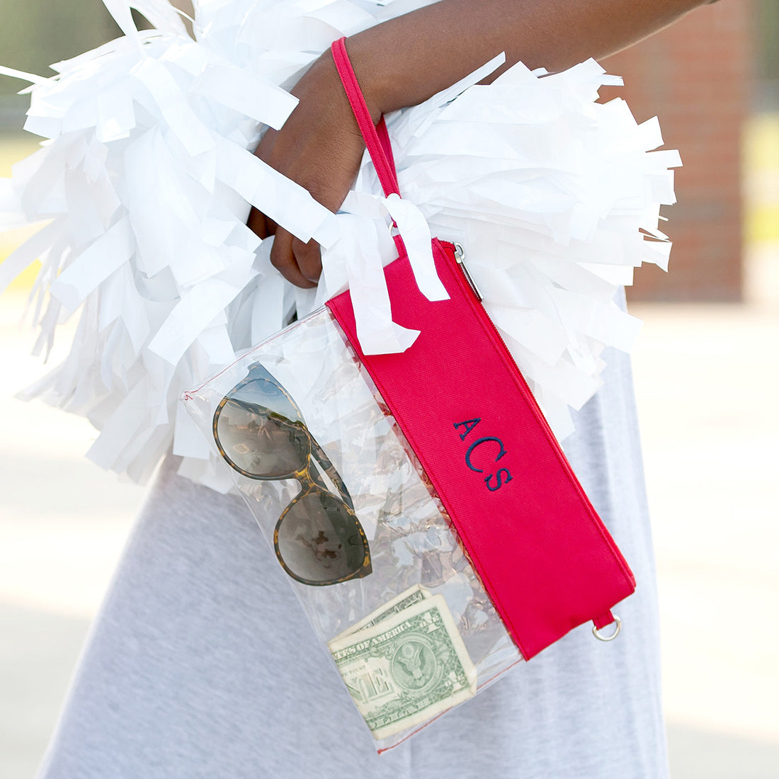 Personalized Clear Stadium Approved Crossbody Purse, Clutch, Wristlet, Concert In Red