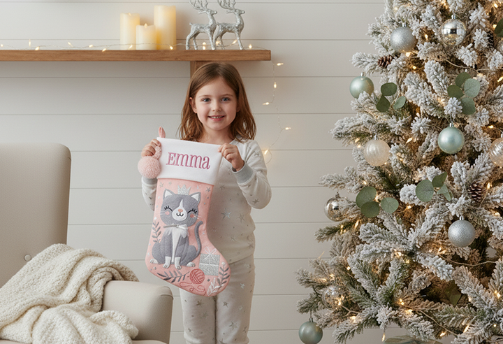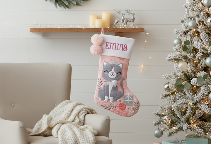 Personalized Stephen Joseph Embroidered Holiday Stocking, Cat