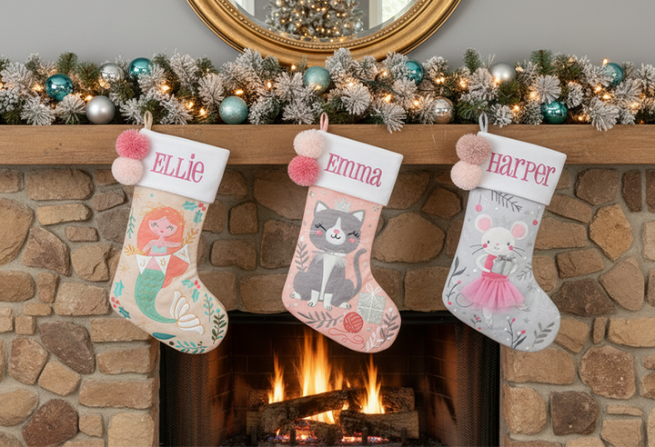 - Colorful pom-poms on each stocking