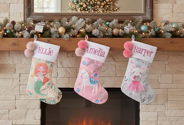 Hang up the stockings and hope you’re on this years nice list! Our collection of holiday stockings will look marvelous hanging from the mantle, and will withstand being filled to the brim with treats. Designed with all our favorite Stephen Joseph characters, let your child choose between mermaids, sharks, unicorns, dinosaurs and more to wait for Santa to bring treats down the chimney. Each stocking is designed with special elements like tulle, felt applique, tassels and embroidery. Don’t forget to personalize the top of the stocking with your little ones name too!